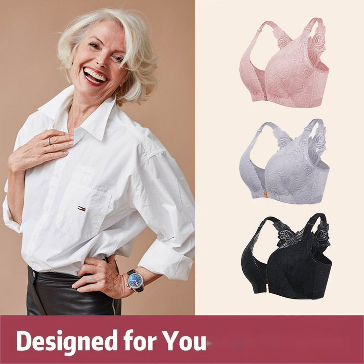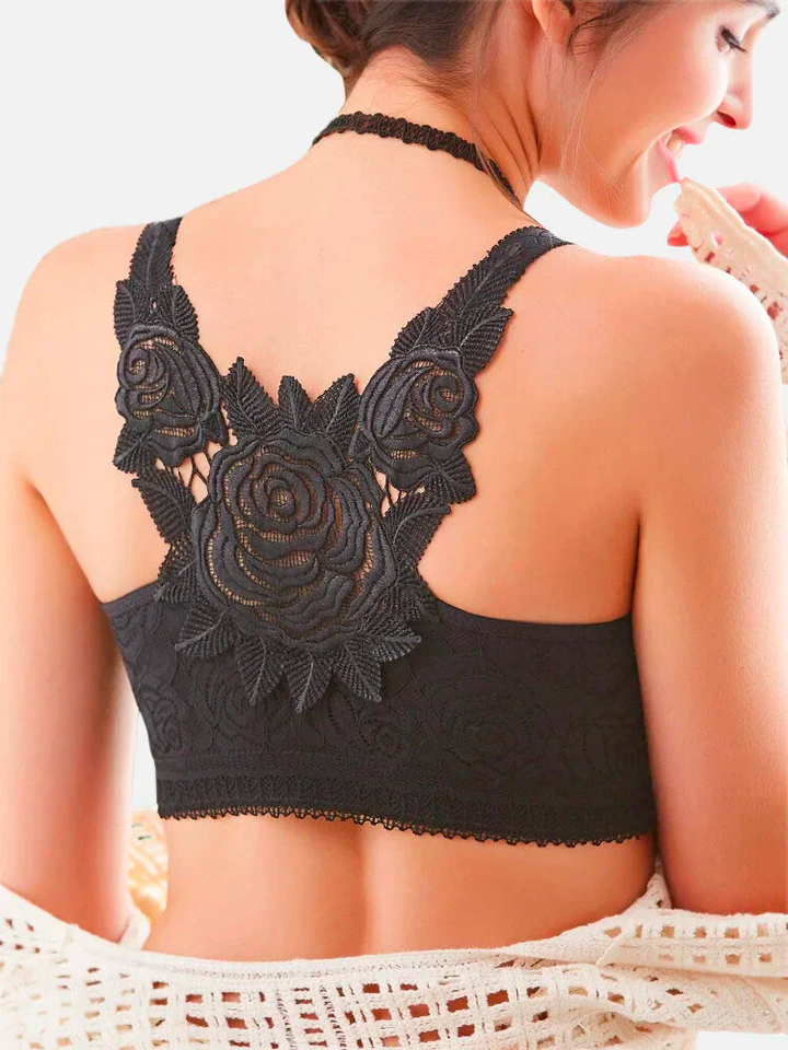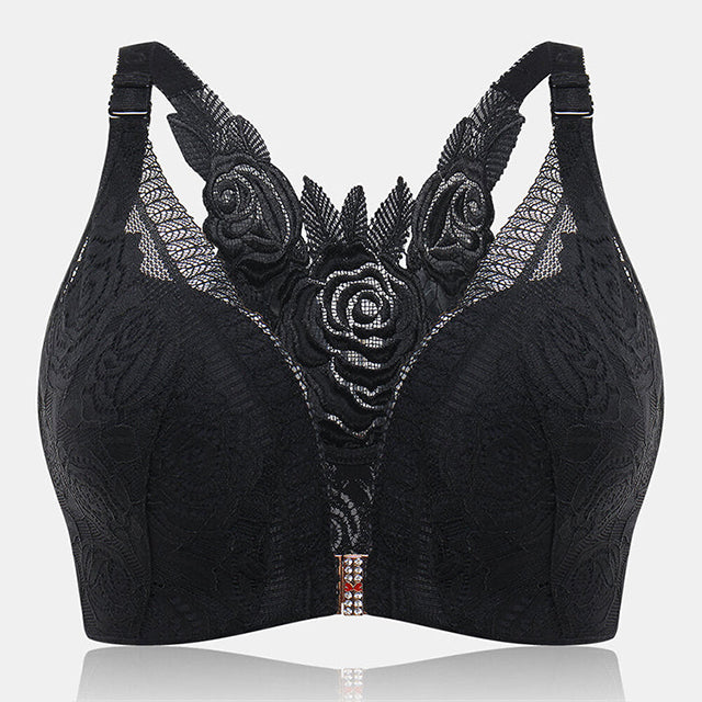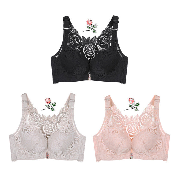 ELIZABETH® Front Fastening '5D' Stereoscopic Rose Embroidery Bra(BUY 1 GET 2 FREE)(3 PACK)